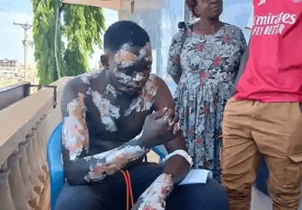 Kwa hasira, alimpasha moto maji na kumtupia usoni na mwilini. Aliishia kuungua vibaya, aina ambayo inahitaji muda wa hospitali na labda kupandikizwa ngozi. Picha zinazosambaa mtandaoni zinamuonyesha akiwa amefungwa bandeji, akionekana katika maumivu makali.
